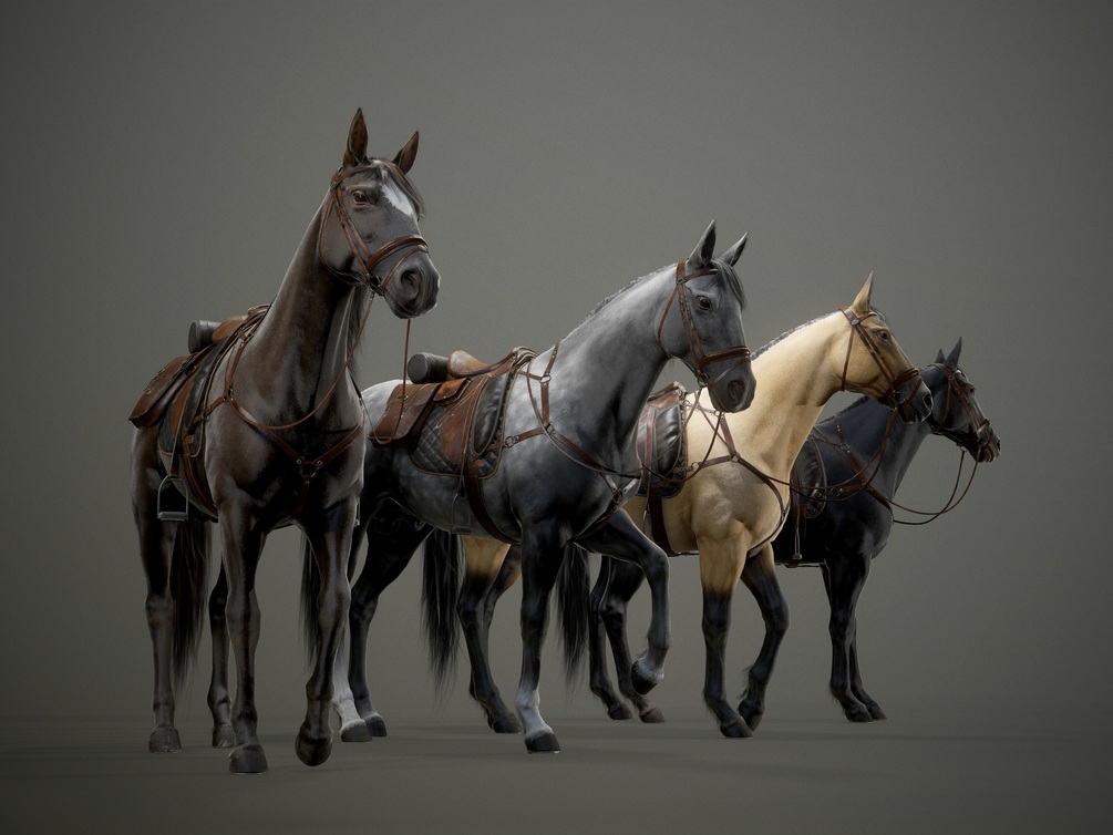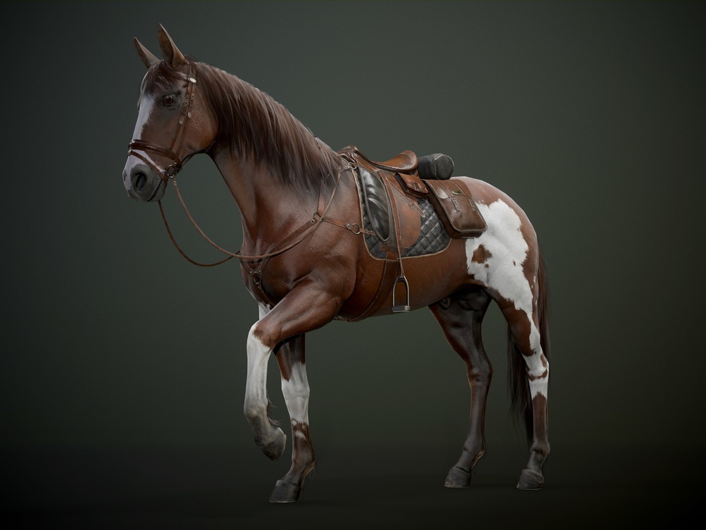 This pack contains all the files needed for putting this horses in your games or study them. So it has LP version of the horse in 2 version (saddle and no saddle version),7x8k png textures for horse body, 4x4k png textures for the horse hair and 4k png saddle textures.